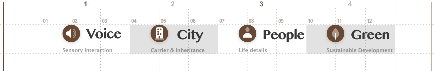 So, from the urban life to the auditory sense, and then from the sound to the changes in our environment, finally, the concept of the project emerged.