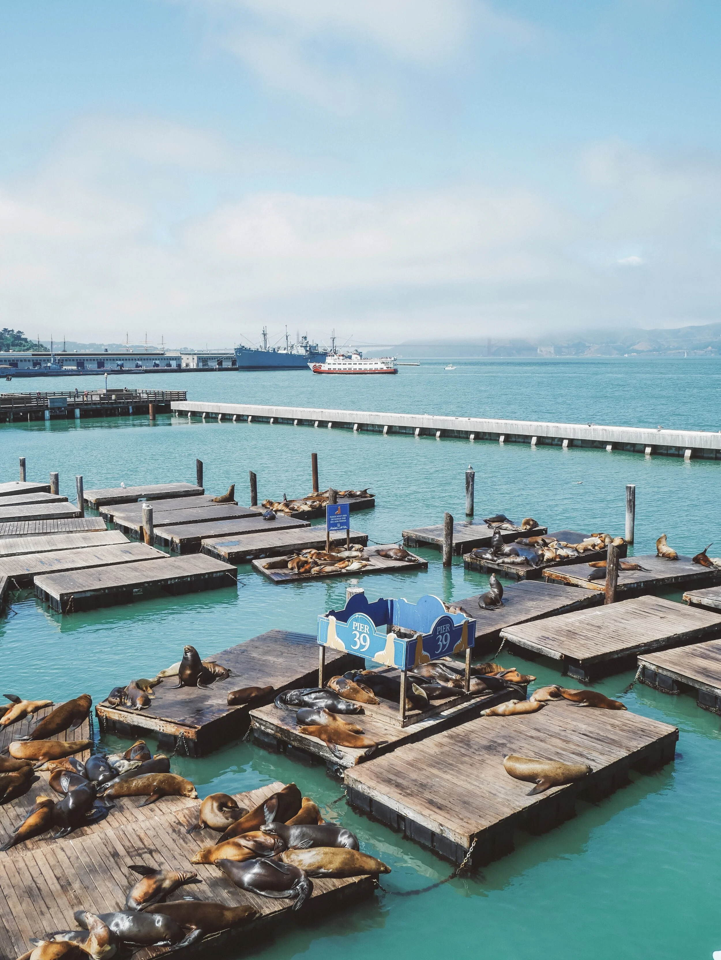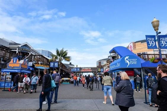 Pier 39 is a tourist attraction and shopping center located in Fisherman's Wharf, San Francisco, USA. At Pier 39, there are shops, restaurants, video shops, street performances, as well as the Marine Mammal Center and the Bay Aquarium. The pier is close to Chinatown and River Trade Pier and can be reached via F Market and Wharf Line Streetcars. At Pier 39, you can look out over Angel Island, Alcatraz Island, the Golden Gate Bridge, and the San Francisco-Oakland Bay Bridge. Blue and Gold Fleet Bay Cruise sails from Pier 39.